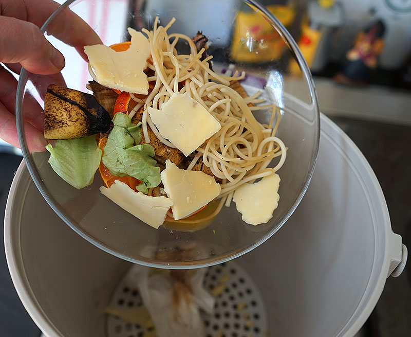 Inomhus kan vi kompostera grönsaksrens, skal och växtdelar i maskkomposten eller i bokashikomposten där vi även kan kompostera mejerivaror, kött- och fiskrester.