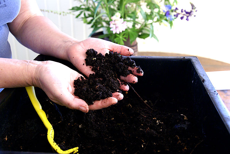 Materialet ska alltså inte vara allt för tätt packat. I trädgårdskomposten och i varmkomposten är det därför bra att vända och röra om när nytt avfall läggs på. I maskkomposten sköter maskarna om ventilationen så där ska man absolut inte röra om.