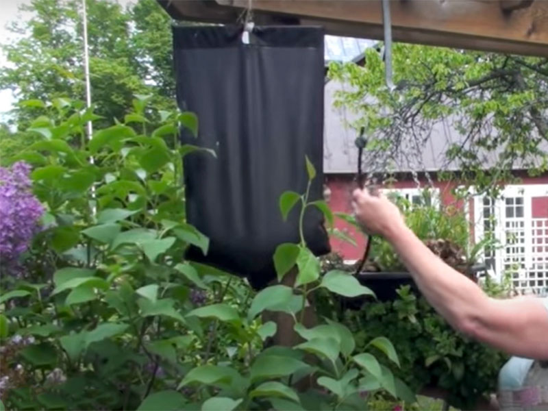 Det kan vara en enkel lösning där du sätter en flaska i en pip som släpper vatten kontinuerligt, en droppbevattning från en vattensäck som Big Drippa, eller varför inte koppla in ett par munstycken från Irrigatia solcellsdriven bevattning?