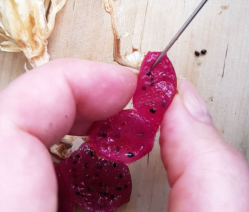Skär frukten mitt itu och peta loss fröerna.