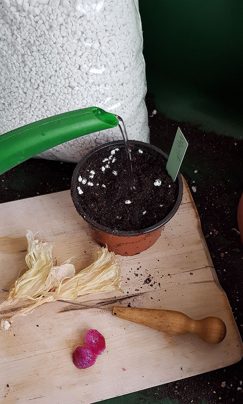 - Ställ krukan i ett minidrivhus i rumstemperatur eller något varmare.
