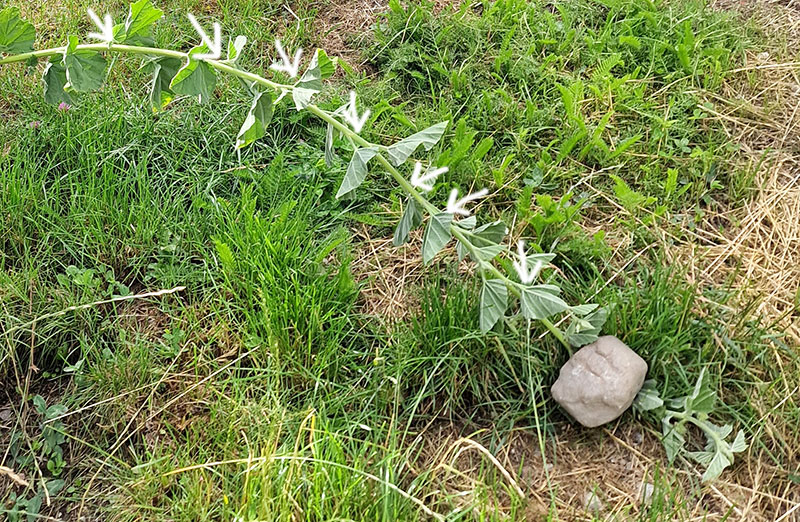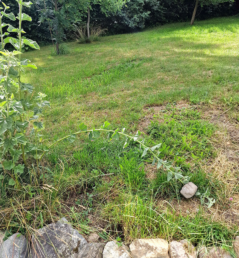 Böj stjälken försiktigt och förankra den så att den behåller sin position. I det här fallet har jag böjt ner den och lagt en sten på toppen.