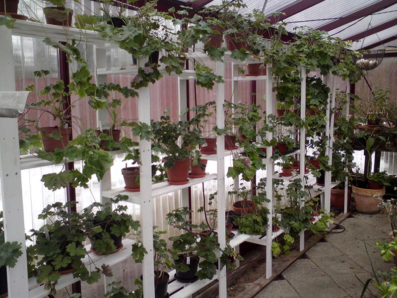 Övervintring av pelargoner på hyllor i ett uppvärmt växthus - LS