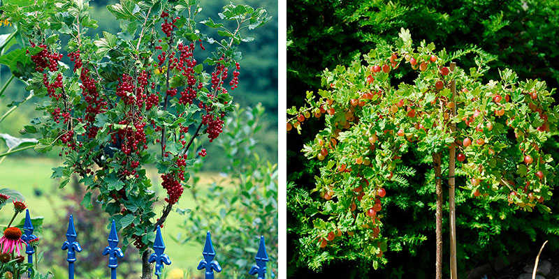 Bärbuskarna blir plötsligt vackra prydnadsträd. Dessutom lättplockade. Här röda vinbär och krusbär.