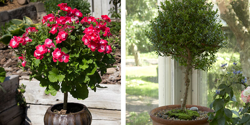 Krukväxter som pelargon och myrten blir med åren nästan som japanska bonsaier. Klipp in kronans skott ofta så blir den tät.