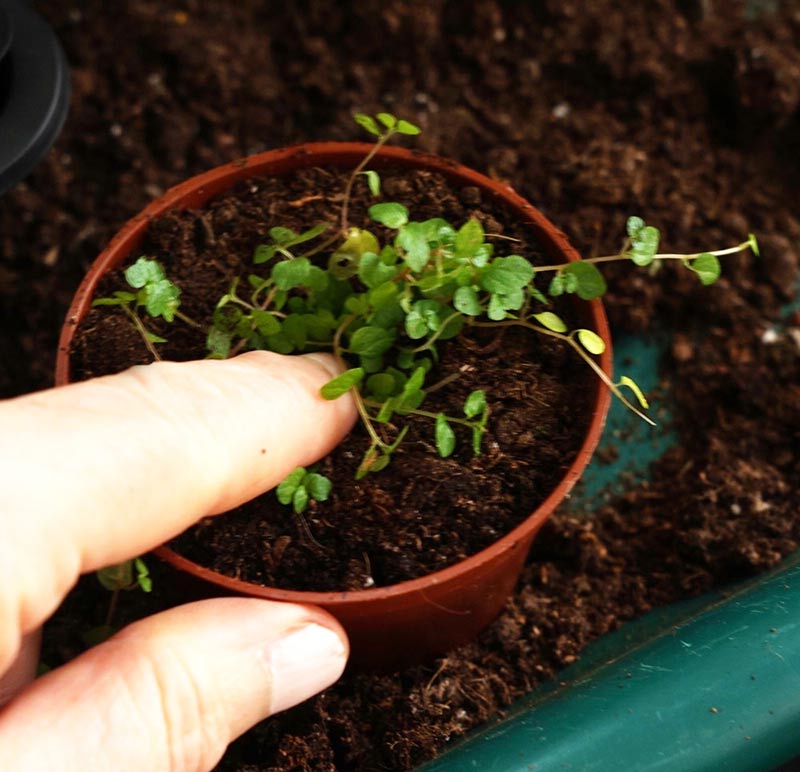 Så snart man ser att det börjar växa i krukan kan man klippa loss revan från moderplantan och behandla den som en självständig planta.