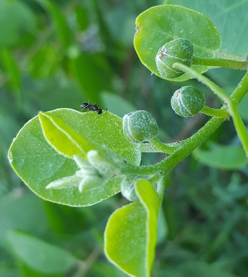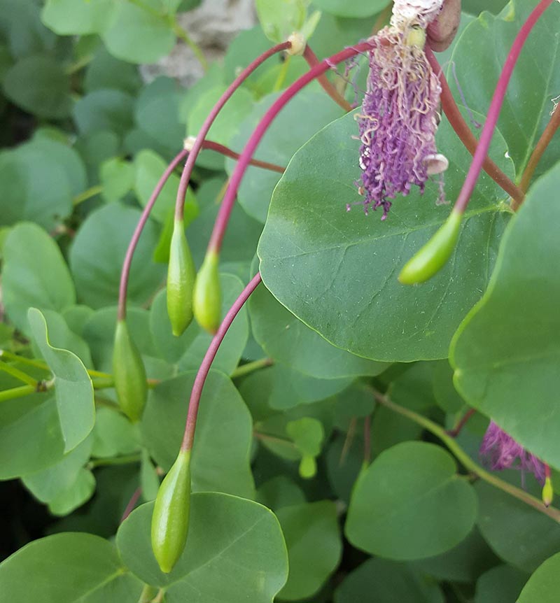 Växtsättet är hängande då de långa grenarnas stjälkar inte är särskilt kraftiga utan breder ut sig på marken eller hänger som en kaskad från bergs- och klippsidor.