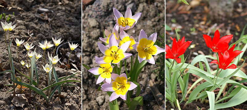 Dessa tulpaner återkommer år efter år och sprider sig med sidolökar.
