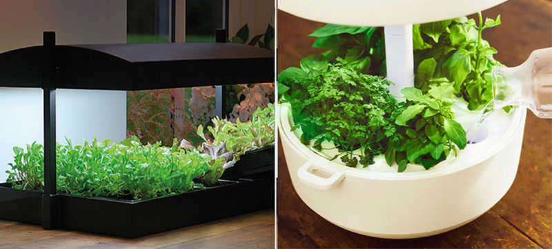 Fördelen med en bra växtlampa är att örtagården kan stå inne i köket.