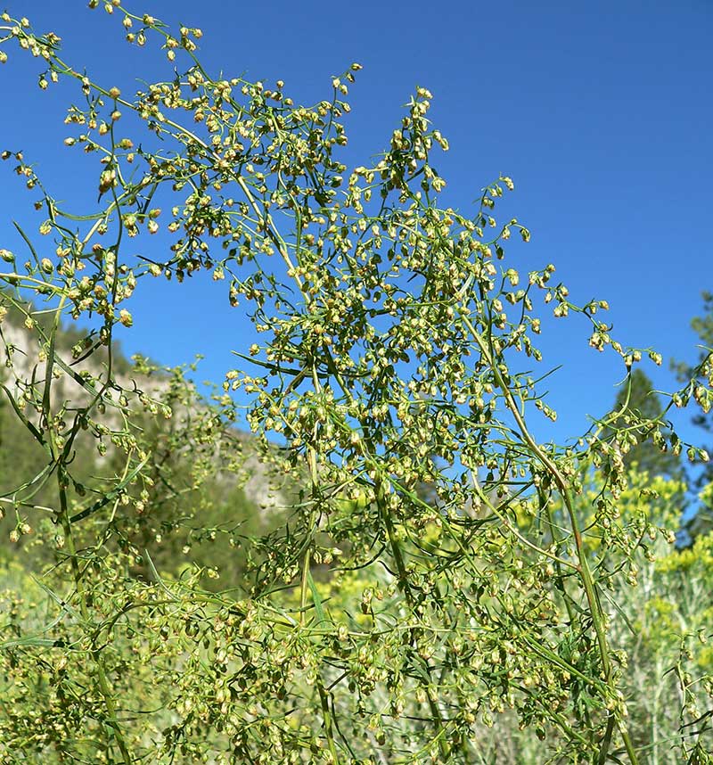 Vildväxande dragon. På den oansenliga blomman syns det nära släktskapet med malört och åbrodd.