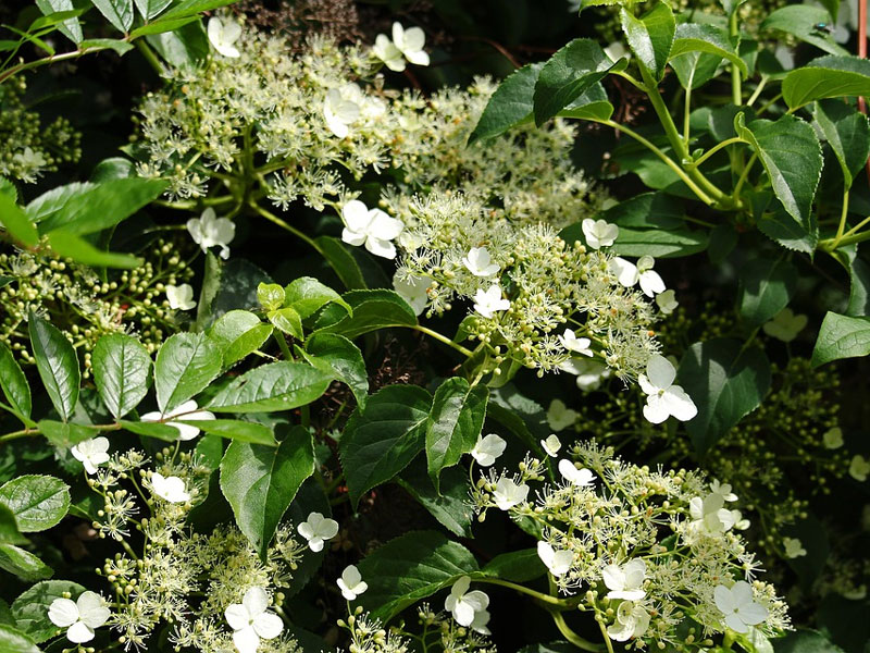 Klätterhortensia är en av våra bästa klätterväxter; snygg i alla skeden då också grenverket är vackert knotigt och de intorkade blomställningarna pryder hela hösten.