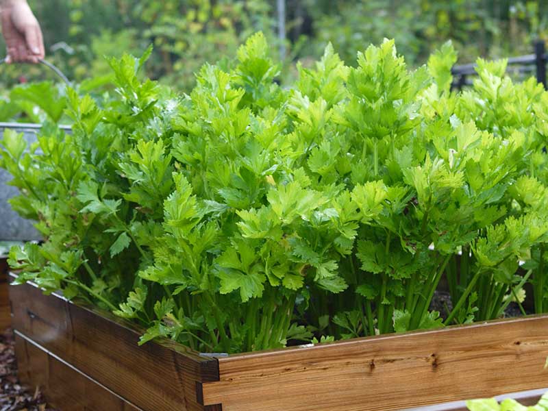Den frodiga sellerin växer i robusta ruggar med en lång skördesäsong.