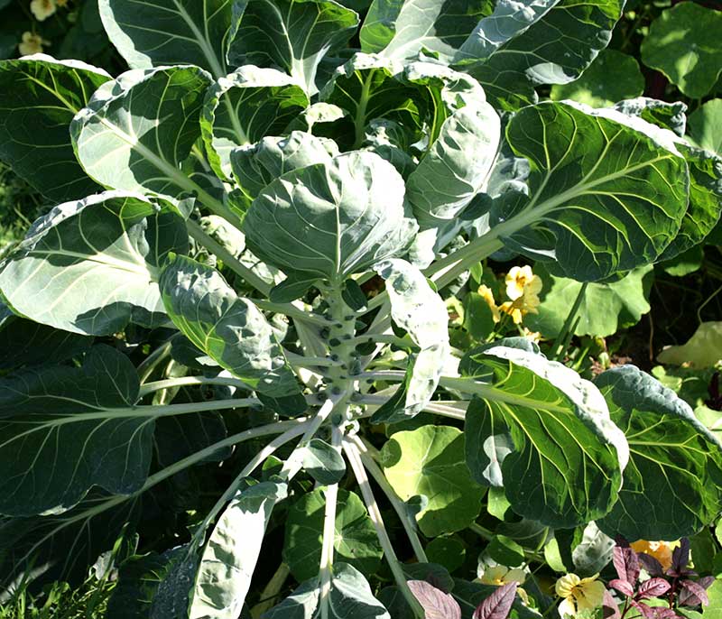 Den relativt långa kulturtiden gör det tacksamt att samodla brysselkål med snabbare växter och blommor. Plantorna tar inte mycket plats under försommaren, tidig sallat och rädisor kan du därför så och skördas mellan kålplantorna.