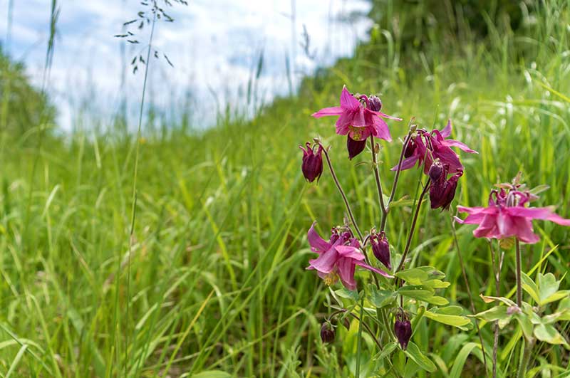 Vildväxande akleja i ängslandskap utanför tyska Bremen.