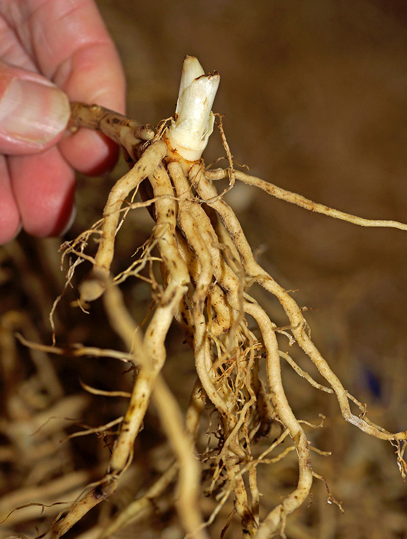 - Plantera rötterna i rejäla krukor (1-3 liter), med god dränering och i porös, gärna sandblandad jord. Plantera ganska grunt, ungefär som växten tidigare stått.