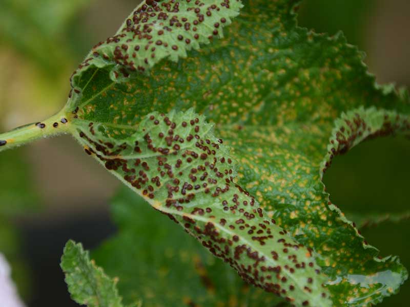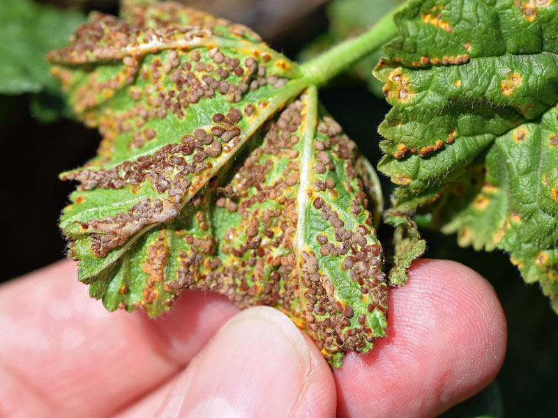 Tag bort blad så fort du ser angrepp och släng i soporna. Tag också bort de första bladen på våren och täck sedan marken extra kring plantorna med jord, så att sporer på marken hindras att virvla upp.