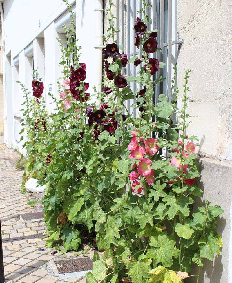 En varm husvägg att luta sig mot är idealläget för stockrosor.
