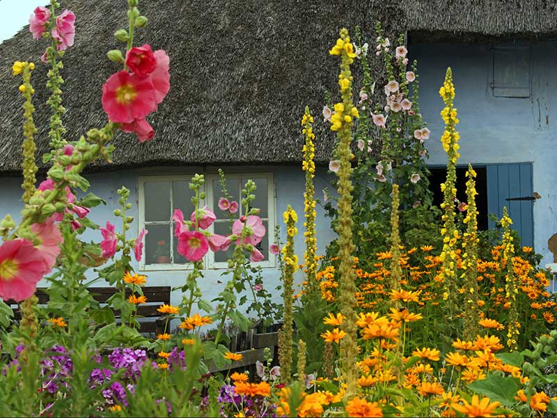 Stockrosen är en klassisk trädgårdsväxt som man ofta ser i sagolika gatumiljöer. Har odlats i Europa sedan 1200-talet!