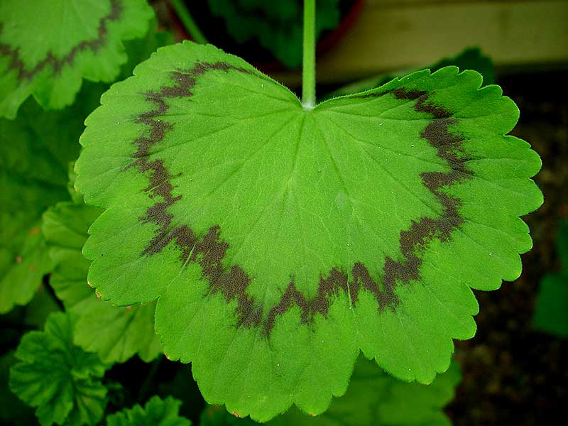 Tydlig zonmarkering på en P. zonale (ena föräldern till de vanliga zonalpelargonerna)