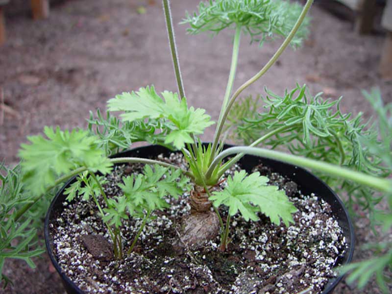 Även bladens storlek och form varierar mycket. Hos några är bladen nästan lika flikiga som hom dill, hos andra är de runda och centimeterstora. Ytterligare andra har decimeterstora och djupt flikiga blad.