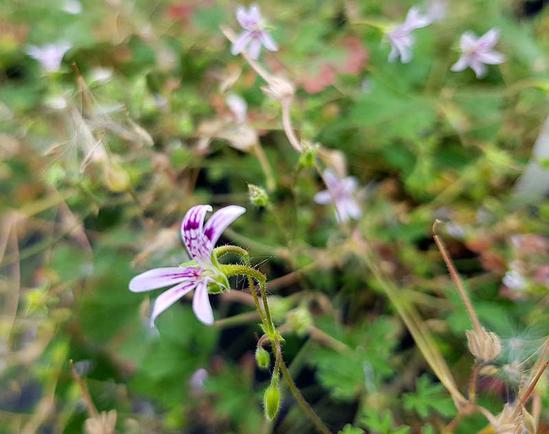 Pelargonium lanceolatum har avlånga spetsiga blad
