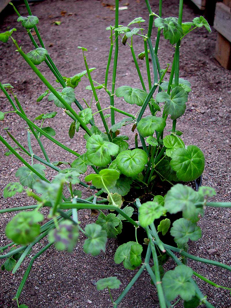 En del pelargoner är mer suckulenta (har saftiga stammar och stjälkar) än andra. De växer där det nästan aldrig regnar. De har förmågan att lagra vatten och får sitt behov av vatten tillfredsställt från den dagg som faller på den.