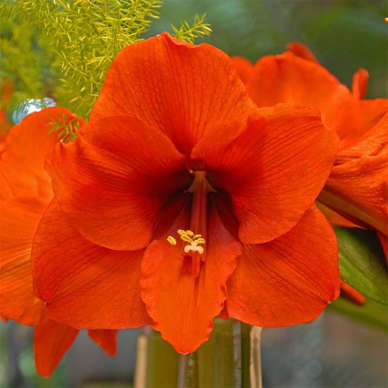Amaryllis 'Horizon' är en vacker sort med korallröda blommor som har en mjuk persikaton och en svagt grön hals. De stora, trumpetformade blommorna har en fin, sammetsliknande yta och ger ett varmt och behagligt intryck. ’Horizon’ passar utmärkt för att lätta upp inomhusmiljön eller som ett stilrent inslag i vinterdekorationer.