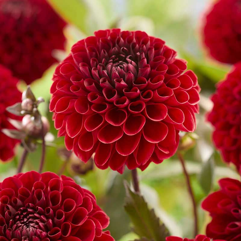 Dekorativdahlia 'Baccara', röd, 100-120 cm hög, sol-halvskugga, juli-oktober, 1 knöl.