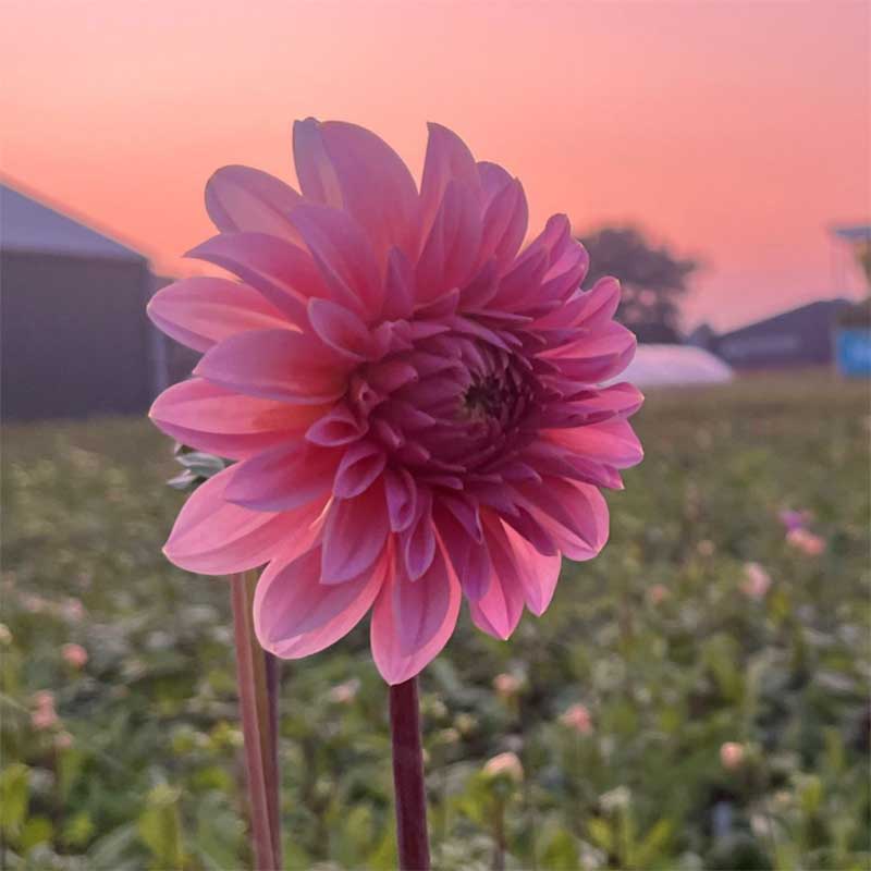 Dahlia ’Beauty Queen’ En elegant dahlia med stora, fyllda blommor i mjuka nyanser av rosa och aprikos. Stadig växt med riklig blomning hela sensommaren. Perfekt i rabatt och som snittblomma.