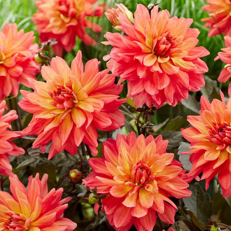Dekorativdahlia 'Camelot' har blommor i mjuka aprikosorange toner. Den ger ett fint inslag av färg i trädgården och passar lika bra i rabatten som i en bukett. Med sin långvariga blomning är den ett uppskattat val under sensommaren och hösten.