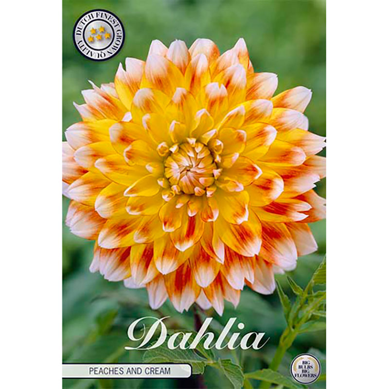 Vetenskapligt namn: Dahlia x pinnata Dekorativ-gruppen 'Peaches and Cream'