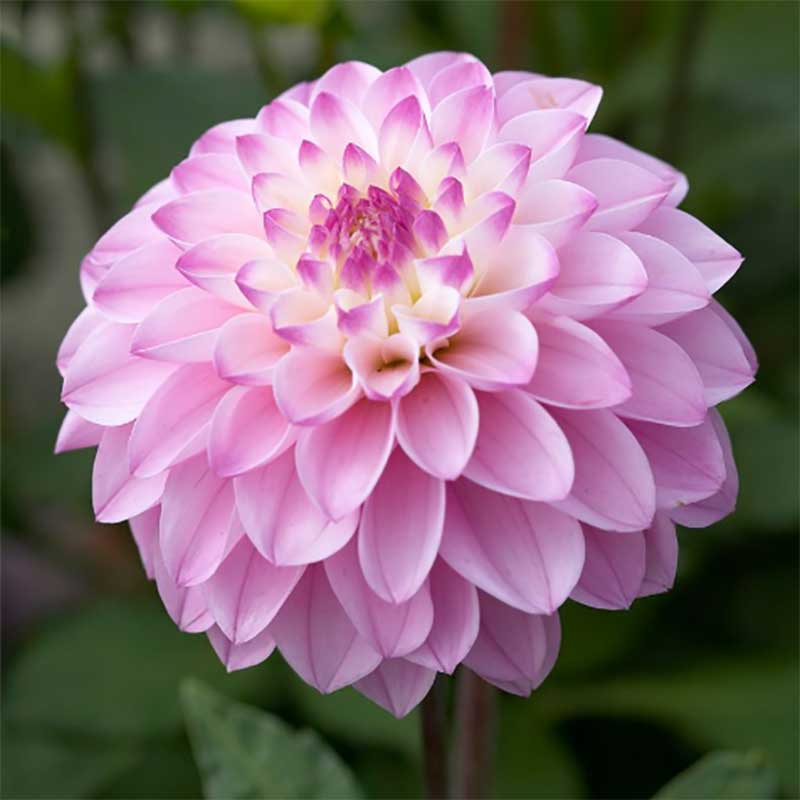 En förtrollande dekorativdahlia med stora, tätt fyllda blommor i mjuka nyanser av rosa. En riktig juvel i rabatten som blommar rikligt och länge. Passar lika bra i rabatt som till snitt.