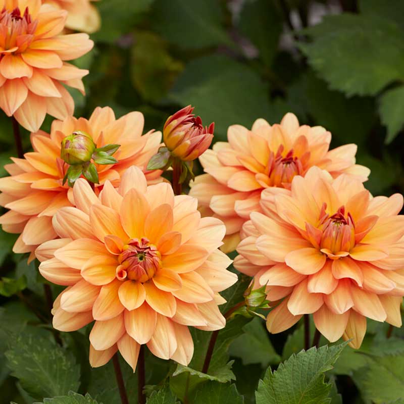 En näckros blommande dahlia i aprikosrosa toner. Dahlior trivs i både kruka och rabatt och är vackra, hållbara snittblommor. Otroligt lättskötta och bekymmersfria växter som kan bli mycket gamla om du tar hand om knölarna till hösten.