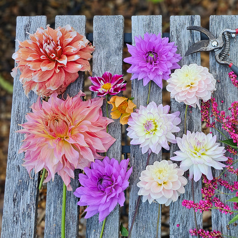 Hemliga Dahlia-paketet med 6 sorter ger dig blomsterprakt, variation och överraskningsglädje i ett och samma dahlia-paket.