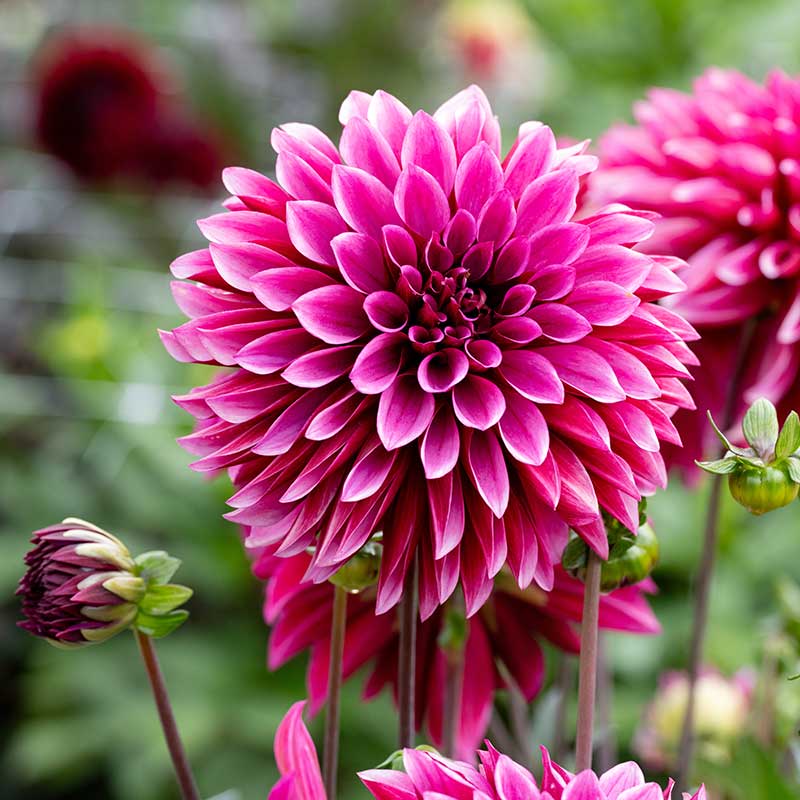 En dekorativ småblommig dahlia i cerise/lila toner som skiftar under säsongen. Dahlior är otroligt lättskötta och bekymmersfria växter som med åren bara blir större och finare om du tar hand om knölarna till hösten.
