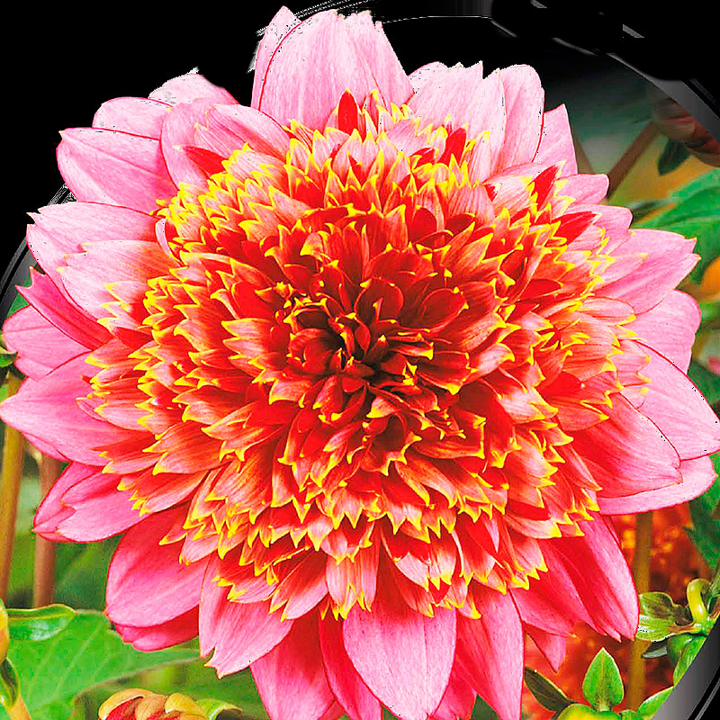 Dahlia Mambo, 1 knöl 60cm anemondahlia rosa med orange, juli–okt sol halvskugga