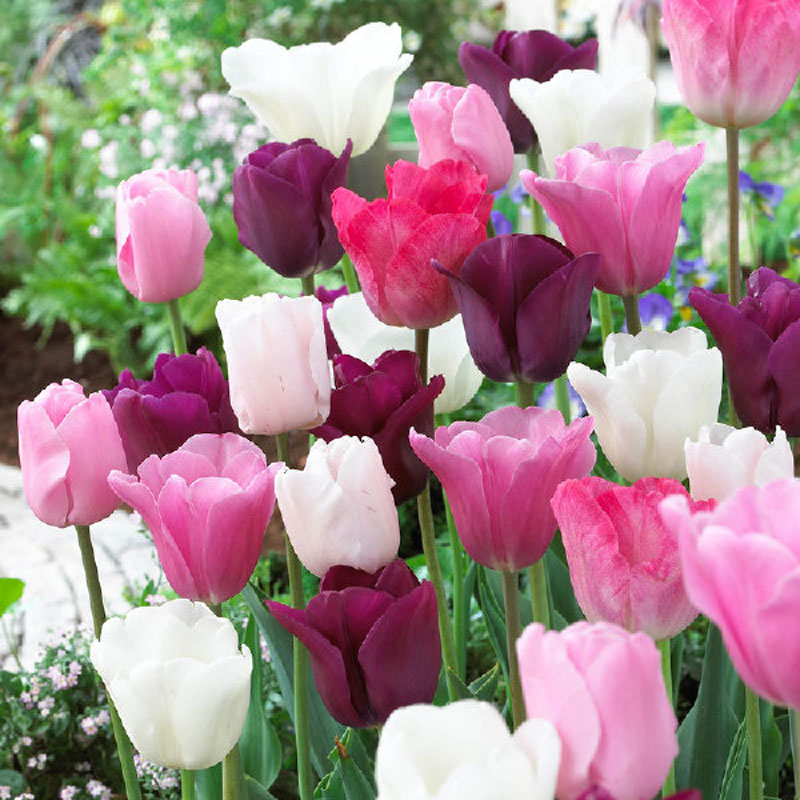 En utsökt tulpanmix som får rabatten att skimra hela våren. Blandningen består av noga utvalda triumsorterna som kännetecknas av ett robust växtsätt och lång blomningstid. Blandningen består av: ’Purple Flag’: ljuslila, ’Don Quichotte’ mörkrosa, ’Holland Beauty’ rosavit och ’Wildhof’ vit.