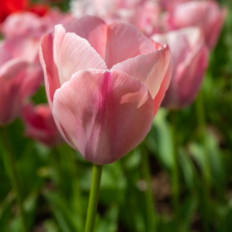 En varmt rosa darwintulpan som gärna ska stå i halvskugga för att skimra som vackrast. Darwinhybriderna utmärker sig med stadiga stjälkar och stora, äggformade blommor som står länge. Återkommer år efter år i rabatten och sprider sig självmant med sidolökar.