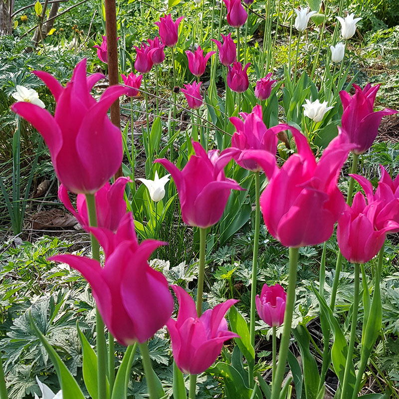 Liljeblommande tulpaner återkommer ofta år efter år där de trivs.