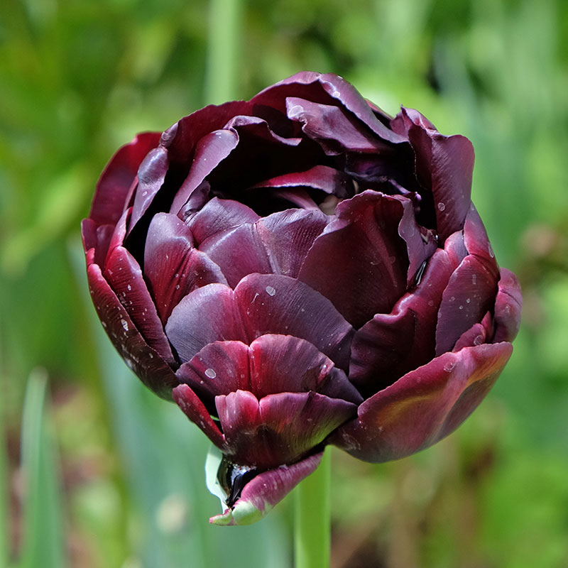 En fylld tulpan i vackra skiftningar från kastanjebrunt till svart. Fin i rabatt, kruka och som snitt.