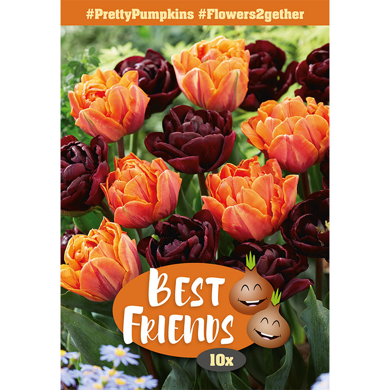 En härlig tulpanmix i orange och vinrött. Mixen innehåller Tulpan 'Canyon' & Tulpan 'Sunlover'.