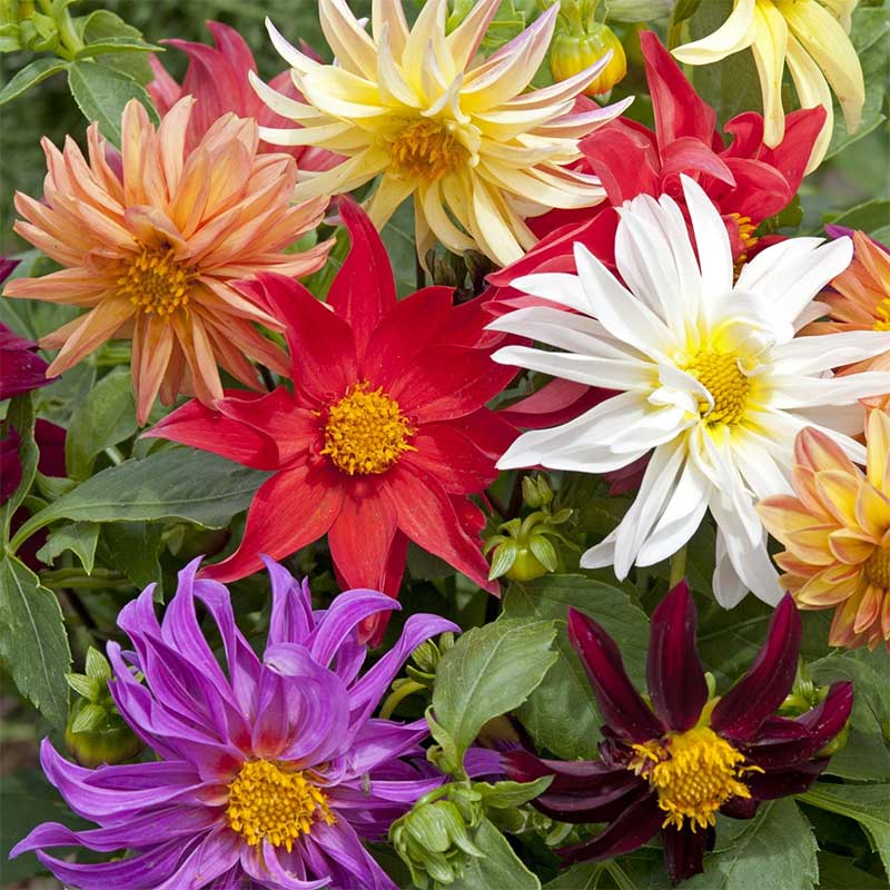 En fantasikt kompakt mix av kaktusblommande dahlior och attraherar bin och fjärilar. Fin till snitt och i rabatten. Blir ca 50 cm hög.