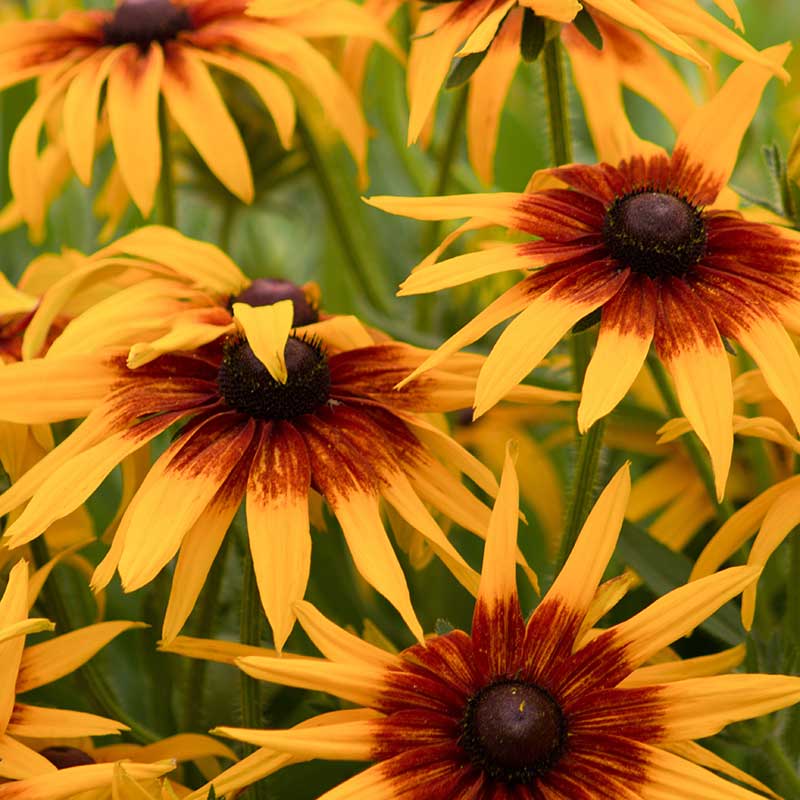 Väl förgrenade blommor med ett livligt färgspel i gult, rött och brons.