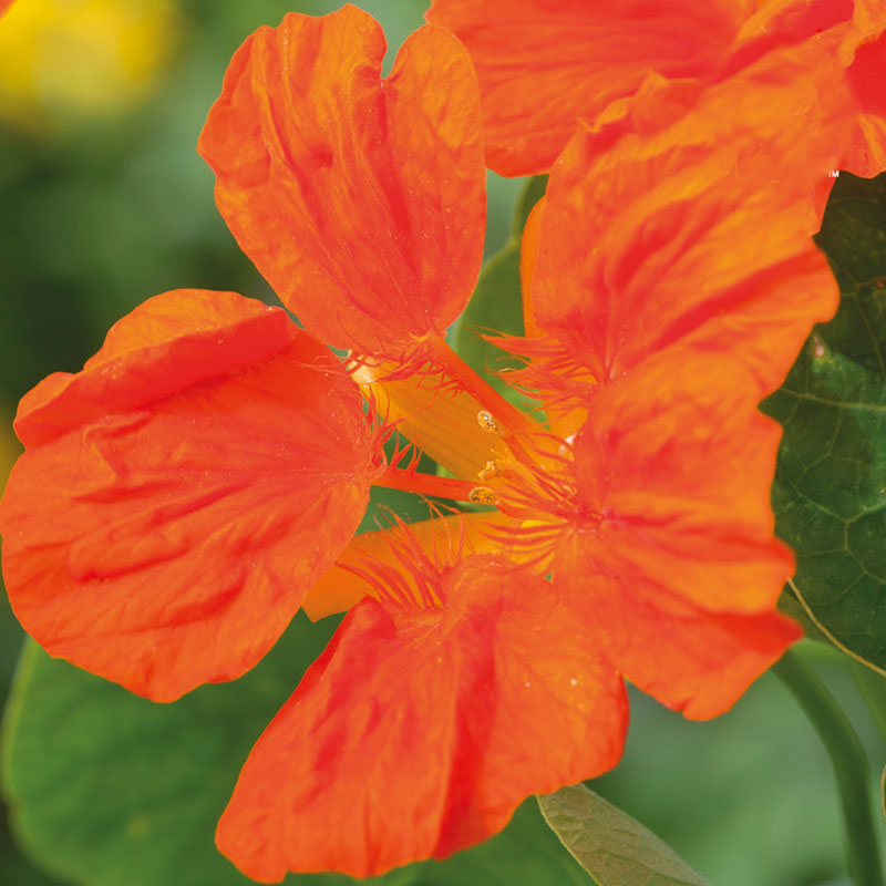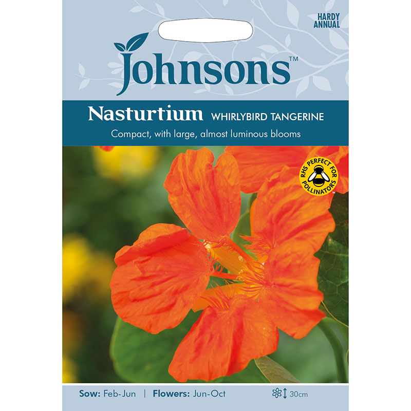 En nästan självlysande orange krasse med upprätta, vackra blommor. Växer kompakt med friskt gröna blommor. Lång blomningstid. Perfekt för sommakrukan eller blomlådan. Hela växten är ätlig och har en frisk krassesmak.