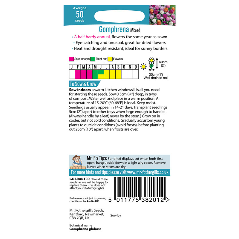 En både vacker och användbar sommarblomma med extra starka stjälkar som bär upp de söta, sfärsiska blommorna. Lång blomningstid och blommorna är underbara i buketter, färska eller torkade till eterneller. Attraherar pollinerare.