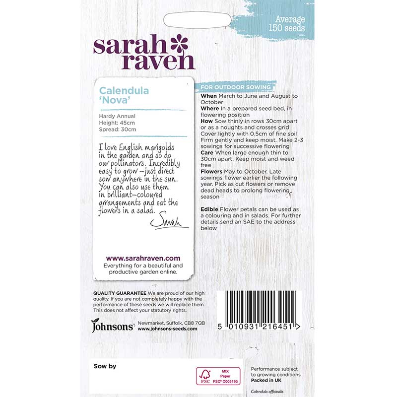 Ringblommor är lättodlade med lång blomningstid och självsår sig där de trivs. Blommorna är ätbara, vackra strösslade i sallader. Passar i både utekruka och rabatt, fin i pallkragen och balkonglådan.