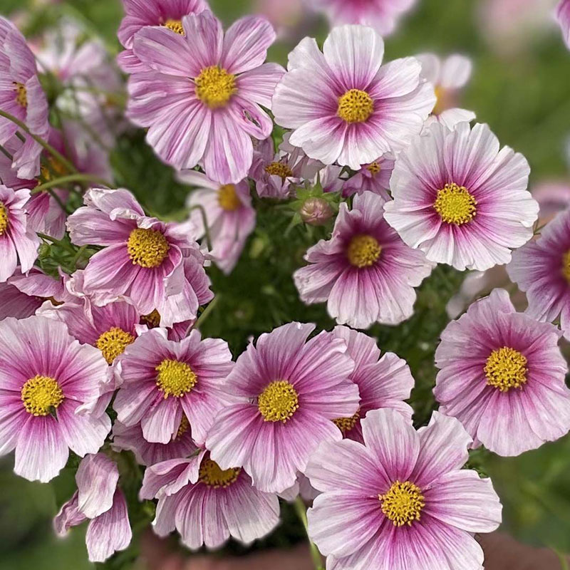 Blommorna har en läcker färgkombination i vitt, ljust rosa och mörkt körsbärsrött. Perfekt för rabatt och som snitt. Gödsla sparsamt, annars blir det mer blad och färre blommor. Putsa bort vissna blommor efter hand. Kan behöva bindas upp.