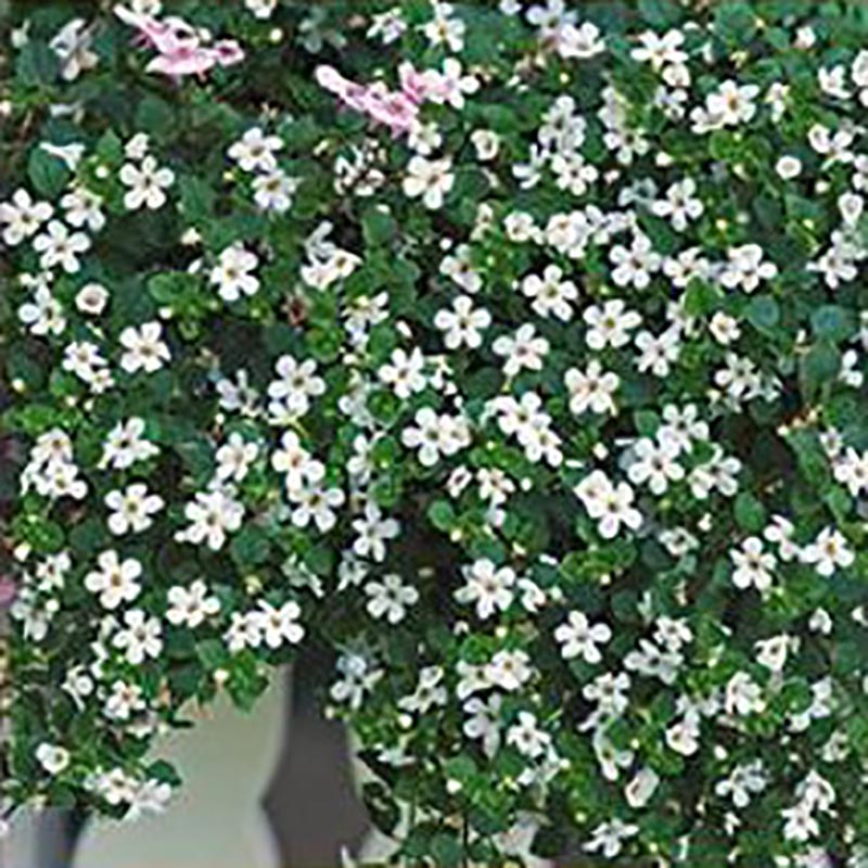 En hängväxt för blomlådor och hängande korgar. Frodig bladdräkt med vita blommor som passar till alla typer av balkonglådor.