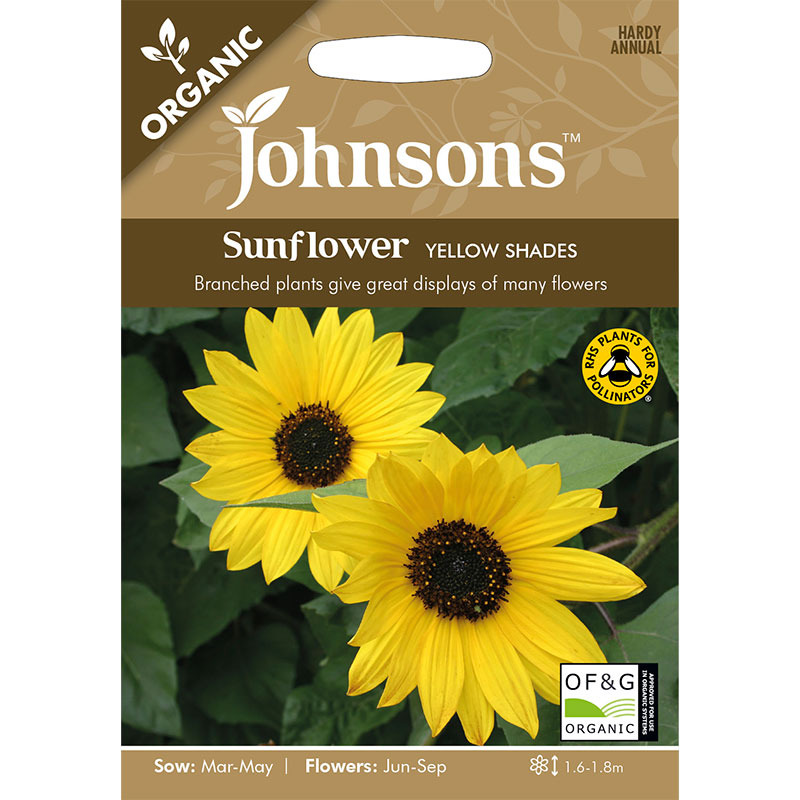 En fin mix av medelstora och grenade solrosor i gyllen-, ljusgula nyansser. Underbar som snitt och uppskattas av fjärilar och bin på sommaren, och av fåglarna på vintern. Blir ca 160-180 cm.