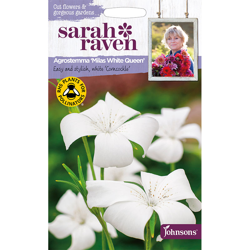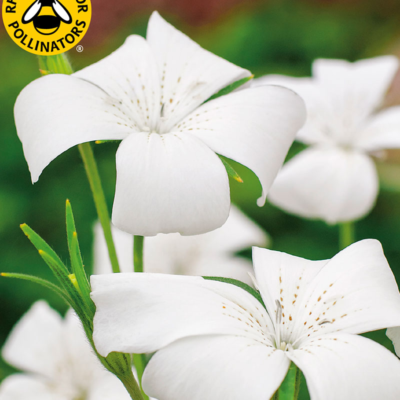 Vita blommor med mörka mittstänk. Stadiga, höga stjälkar som grenar sig i toppen. Vacker och hållbar i rabatt och till snitt.